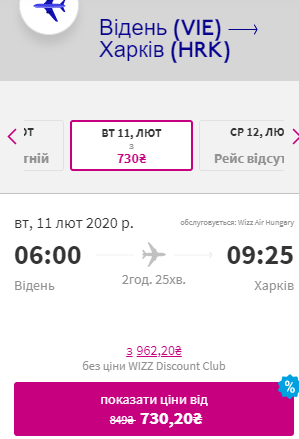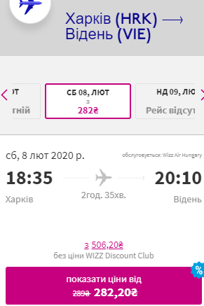Харків — Відень, 8-11 лютого — €36 для учасників wizz-клубу та €52 для всіх інших