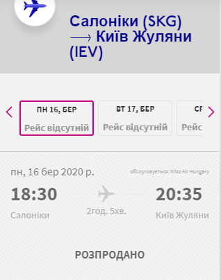 Наприклад, Салоніки – Київ, 16 березня