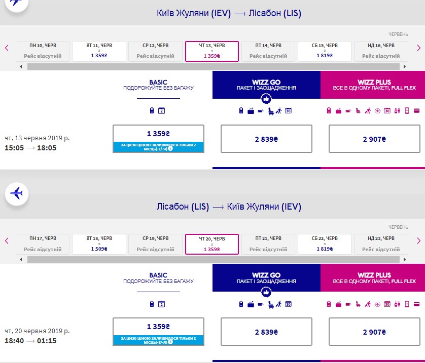 Київ – Лісабон, 13-20 червня- 73 євро у два боки