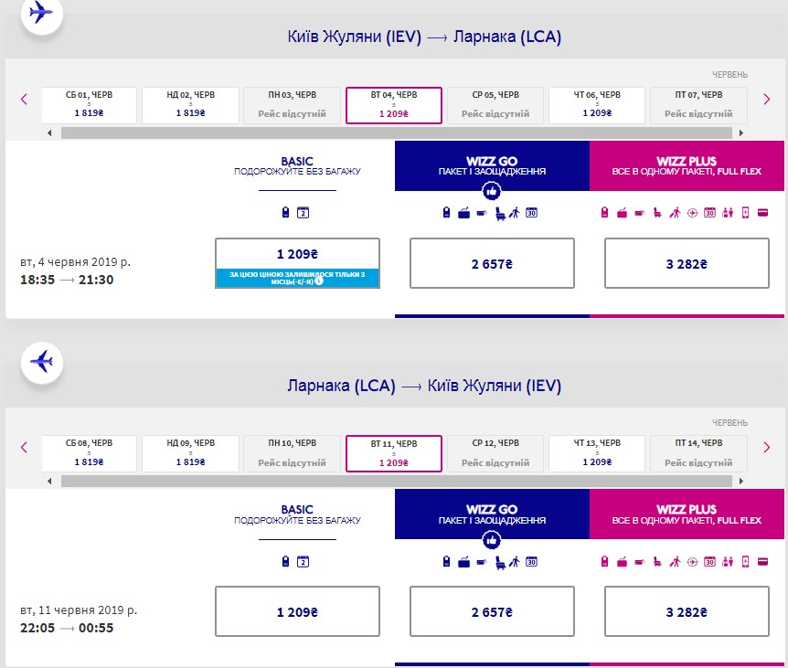 Київ – Ларнака, 4-11 червня- 73 євро у два боки