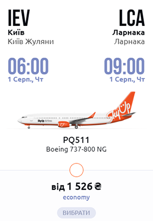 Авиакомпания SkyUp предлагает перелеты из Киева в Ларнаку по цене от €51 в одну сторону или от €101 в две стороны. Особенно порадовал период путешествий: апрель – октябрь 2019 г.