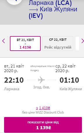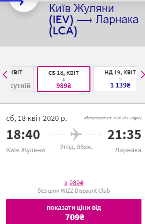 Дати: 18-21 квітня. Вартість квитків у два боки — €68 для учасників wizz-клубу та €89 для всіх інших.