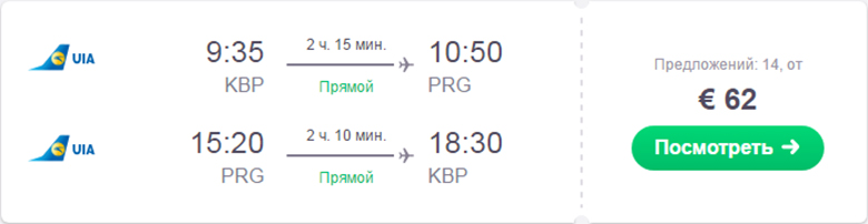 Тариф Київ – Прага – €62 в обидва боки діє на 12-15 лютого 2018 року.