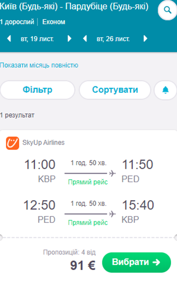 Дати – 19-26 листопада. За квитки туди-назад доведеться викласти €91.