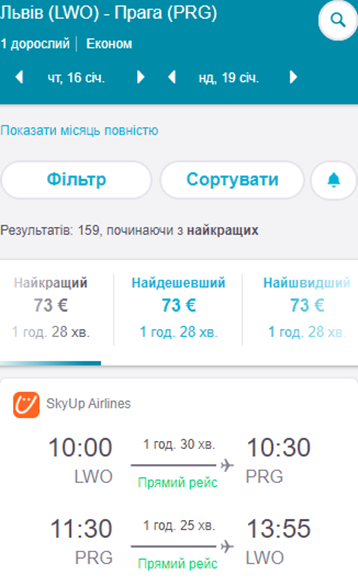 Дати – 16-19 січня. Вартість квитків у дві сторони – €73.