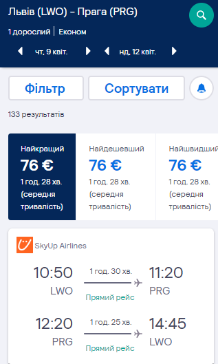 Дати: 24-27 квітня. Вартість квитків — €72 у два боки