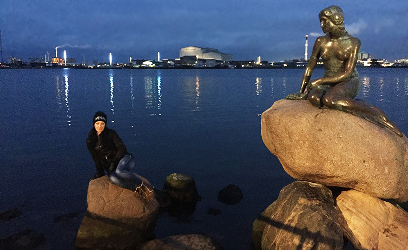 Бронзовая Русалочка (Den Lille Havfrue) сидит на камне и ждет туристов на набережной Langelinie. Пешком от Ратуши дорога у нас заняла около 45 минут. Возле Русалочки есть камень, на который можно залезть и принять соответствующую позу. Сфотографироваться можно бесплатно, но в дневное время придется отстоять приличную очередь. А вот в вечернее время людей гораздо меньше.