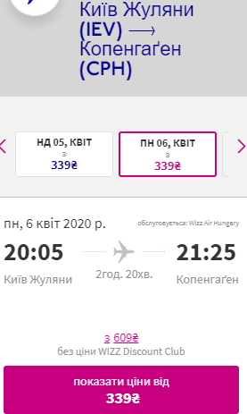 Дати: 6-12 квітня. Вартість квитків у дві сторони – €43 для учасників wizz-клубу та €63 для всіх.