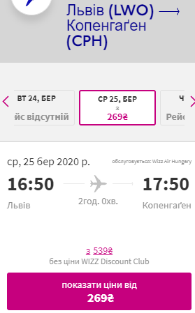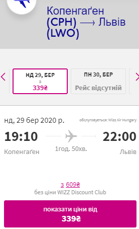 Дати: 25-29 березня. Ціна квитків у два боки – €23 для учасників wizz-клубу та €43 для всіх.