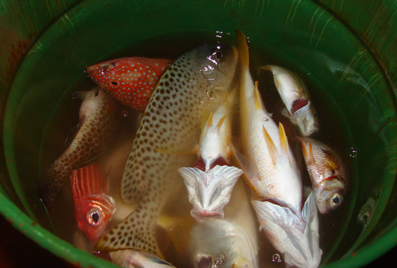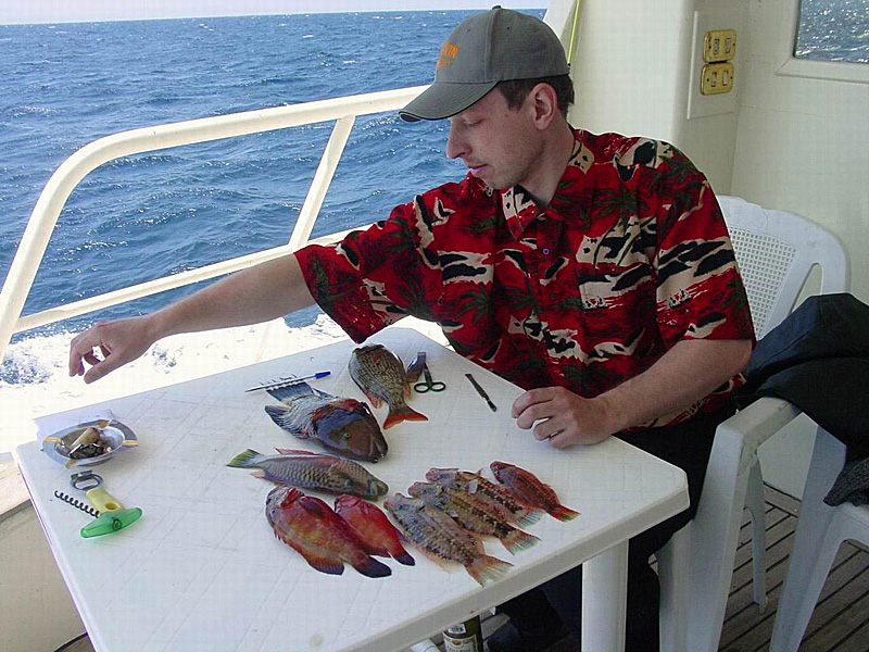 В «рыбалку» входит несколько остановок в море – одна, две или три рыбацких (в зависимости от клева) и одна с целью искупаться, пока вам приготовят обед. Последняя остановка будет у коралловых рифов, рыбацкие – обычно просто в открытом море на отмелях. По египетскому законодательству, ловить рыбу у рифов запрещено, к тому же большинство коралловых рыбок и очень невелики, и не представляют ничего хорошего в кулинарном отношении, а вам предстоит праздничный обед из того, что вы поймали.