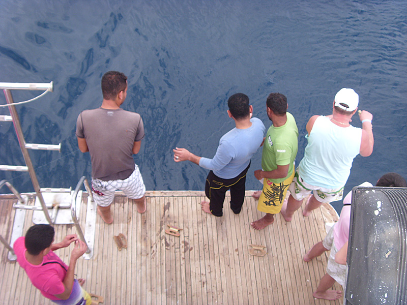 Одним из вариантов морской прогулки в Египте может стать морская рыбалка – эти услуги вам тоже будут предлагать везде. Преимущества заказа такой экскурсии в отеле у представителя солидной турфирмы описаны здесь. Хочу только добавить, что для такого вида морской поездки, как рыбалка, минимальное количество людей на борту еще важнее, чем для обычной прогулки.