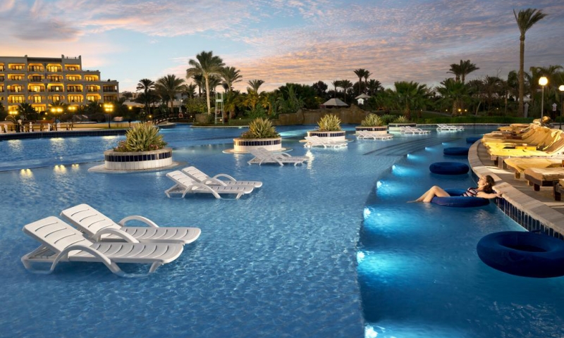 Восточный дворец сети Sentido с красивым изогнутым бассейном, мостиками и резными беседками. Гости отеля могут пользоваться аквапарком соседнего Sunrise Gardens. Мамлюк – это крепкая египетская пятерка с отличным соотношением «цена-качество». В главном ресторане есть отдельный детский буфет. На ужин работают несколько a la carte ресторанов по предварительной записи: азиатский, мексиканский, восточный и итальянский.