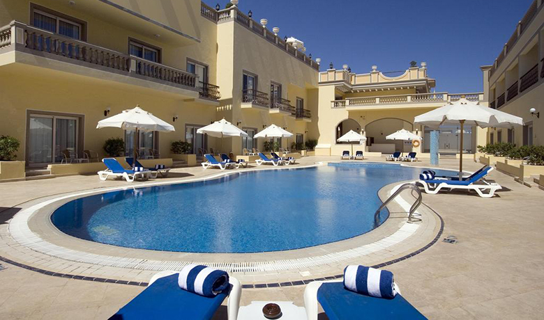 Отель расположен в Хадабет Ом Эль Сид, в самом центре променада Эль Меркато, на курорте Шарм-эль-Шейх, рядом с побережьем Красного моря. У отеля есть собственный песчаный пляж (в 3 км), рядом кораллы, понтон, имеется песчаный вход в море. Протяженность пляжа – 50 м. До пляжа курсирует бесплатный автобус каждый час с 08:00 до 17:00 (в 14:00 перерыв на обед). Бар на пляже работает по системе «все включено» (алкогольные и безалкогольные напитки, закуски подаются с 12:00 до 14:00).