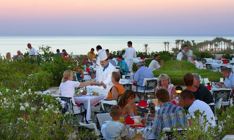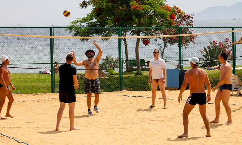 Отель находится в бухте Набк, с октября там может быть ветренно и часто над пляжем вывешивают красный флаг. Но есть и плюс отеля – красивая большая территория и куча бассейнов. Есть прекрасное футбольное поле, на котром действительно играют настоящие мужчины. Работают 2 теннисных корта, есть пляжный волейбол, аквааэробика, живая музыка, дартс, уроки танцев.