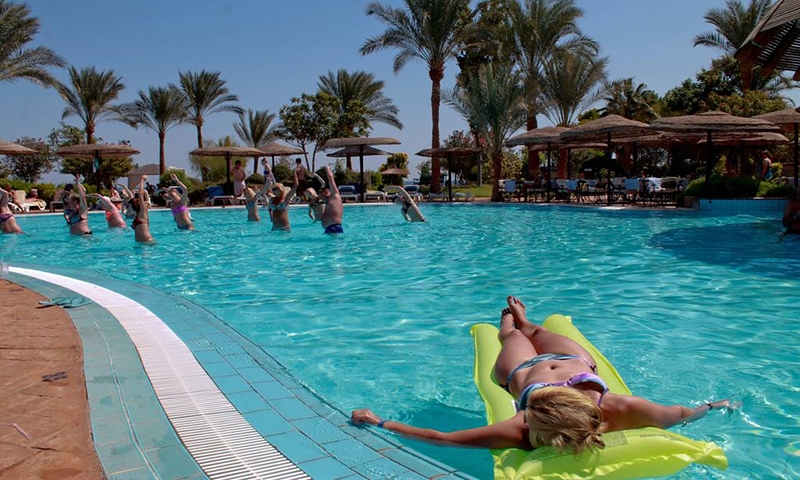 Есть бассейн с подогревом. Море красивое, вход с понтона. Риф очень красивый и разнообразный, напротив – остров Тиран. Каждый найдет свой уголок и занятие по душе. Очень много спортивной анимации. За территорией отеля прогуляться негде, но можно недорого доехать до Soho на такси.