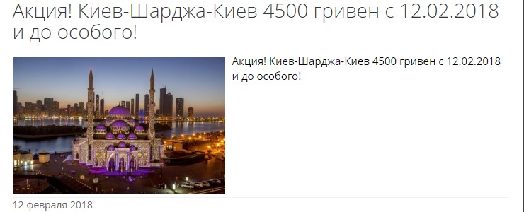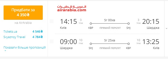 Київ – Шарджа, 3-10 травня – 131 євро. Прямий переліт у обидва боки.