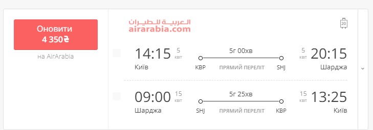 Київ – Шарджа, 5-15 квітня – 131 євро. Прямий переліт у обидва боки.