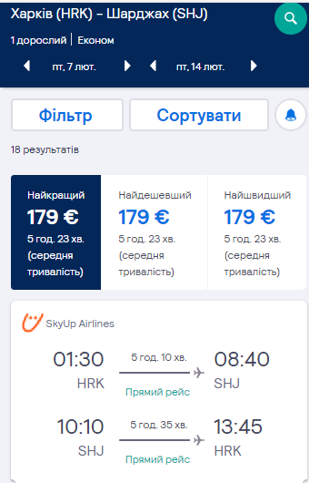Харків — Шарджа, 7-14 лютого. Ціна — €179