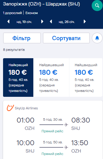 Запоріжжя — Шарджа, 19-26 січня. Ціна — €180
