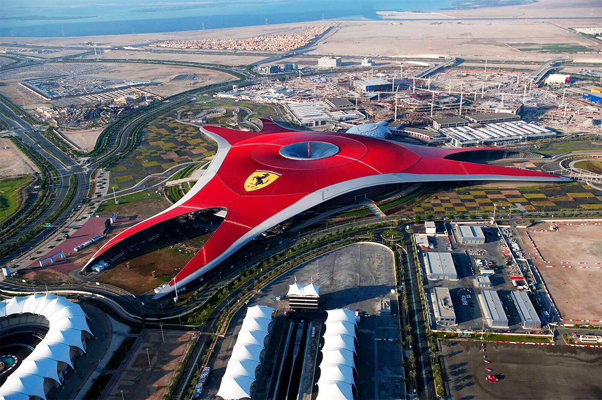 В столице Объединенных Арабских Эмиратов разместился самый большой в мире тематический парк под крышей. Он посвящен итальянской компании Ferrari. Когда Ferrari и Aldar Properties (строительная компания) подписали соглашения о строительстве парка, уже стало понятно, что постройка будет грандиозной. Ведь Aldar Properties строили в Абу-Даби целые районы, торговые центры и даже остров Яс.