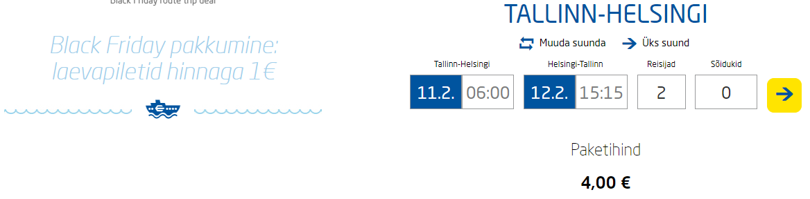 Фінська судноплавна компанія Eckerö Line оголосила BLACK FRIDAY SALE на круїзні рейси з Таллінна в Хельсінки та назад. Вартість квитка – €1 в один бік за особу.