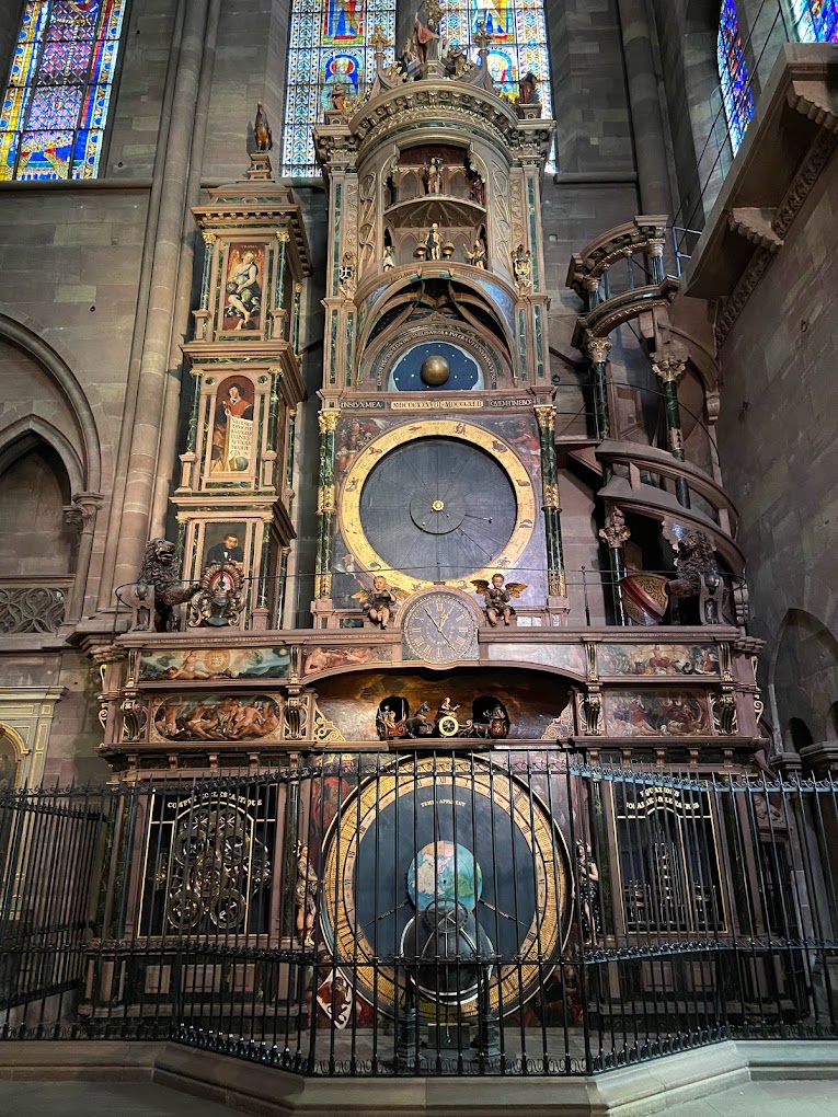 Однією з особливих прикмет цього собору є астрономічний годинник. Це вже третій годинник на соборі. До нього були годинники, побудований у 1353 і 1574 роках. Останній з попередніх працював до 1789 року і він вже мав астрономічні функції. У 1832 році в теперішньому годиннику було сконструйовано унікальний механізм, що показує орбіти Землі, Місяця та відомих тоді планет (від Меркурія до Сатурна). Унікальною особливістю цього годинника є механізм, що завершує один повний оборот у новорічну ніч і обчислює точку відліку для тих свят, дати яких щорічно змінюються. Найповільніша частина годинника показує прецесію земної осі. Для особливо допитливих: прецесія – повільне обертання земної осі. Тобто обертається не тільки наша планета навколо своєї осі, а і сама вісь зміщується по конусу. У цього конуса теж є вісь, яка перпендикулярна до площини земної орбіти. Період прецесії для Землі (платонівський рік) становить приблизно 26000 років. Уявляєте, годинник на цьому соборі має таку повільну частину. Саме внаслідок прецесії рухається точка весняного рівнодення, від якої, зокрема, залежить дата релігійного свята Великодня. Тому дата свята змінюється, тому і такий годинник на християнському соборі.