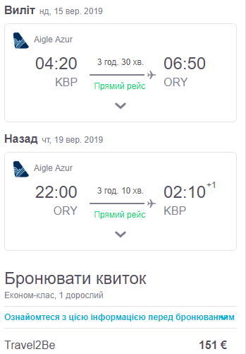 Київ – Париж, 15-19 вересня – 150 євро