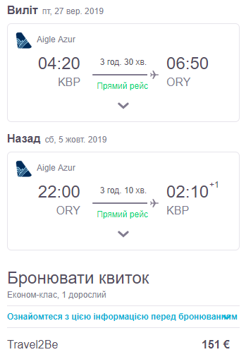 Київ – Париж, 27 вересня- 5 жовтня – 151 євро