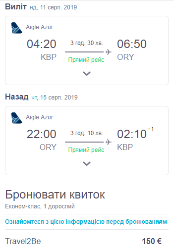 Київ – Париж, 11-15 серпня – 150 євро