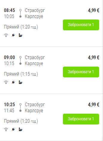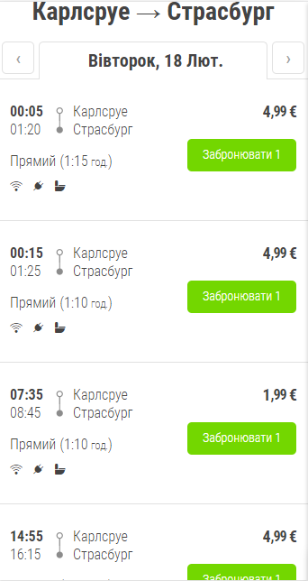 Квитки на зворотній шлях Страсбург – Карлсруе на 21 лютого: