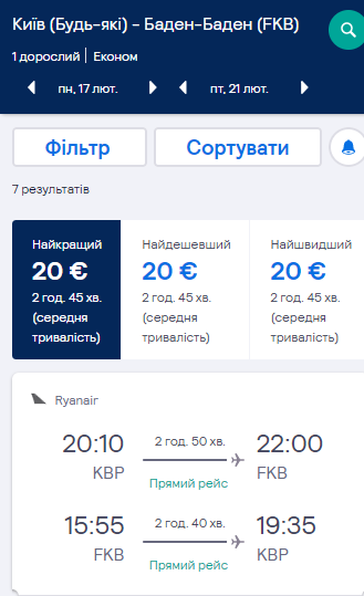 Київ — Карлсруе, 3-7 лютого. Вартість квитків у два боки — €30