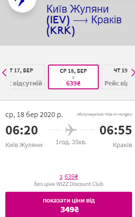 Дати – 18-25 березня. За квитки у дві сторони учасникам wizz-клубу доведеться сплатити €18, а всім іншим – €41.