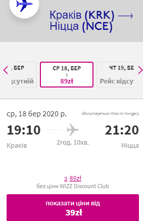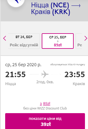 Щоб отримати найнижчу ціну необхідно мати викуплене членство у Wizz Discount Club або придбати його під час бронювання квитків.