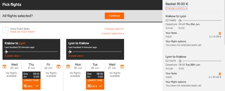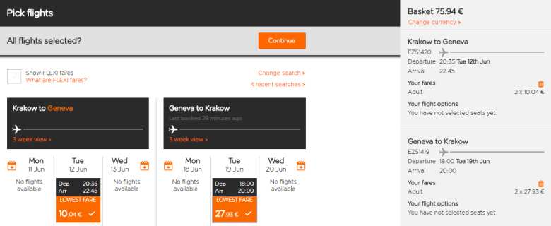 EasyJet пропонує недорогі перельоти з Кракова у Женеву, Ліон та Париж та у інші міста Європи. Квитки починаються від €36 у два боки.