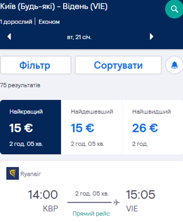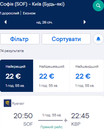 Дати – 21-26 січня. Вартість квитків у два боки – €57.