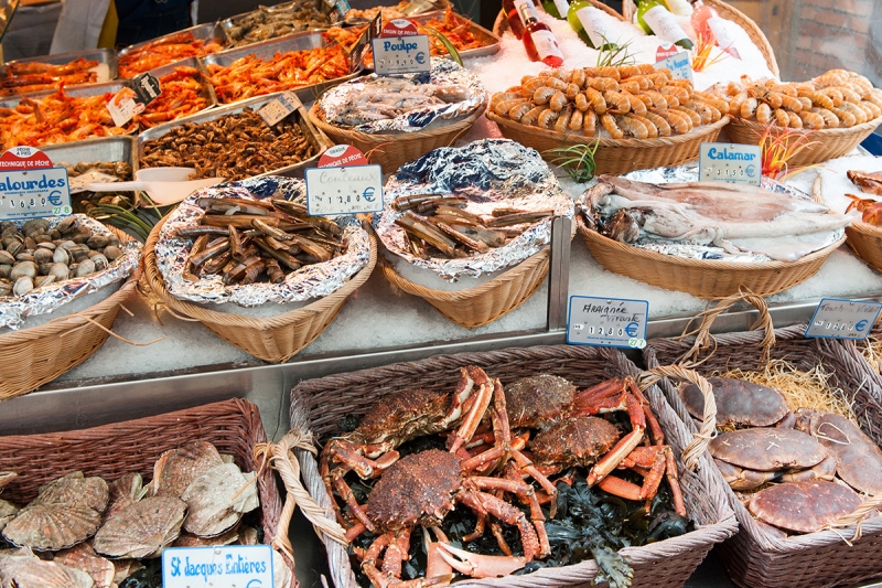 Если вы не веган, вас обрадуют мясные и рыбные лавки. При этом цена в них разная, несмотря на то, что их мало и находятся они рядом. Мне понравилась Poissonerie du Château Rouge. Как-то здесь я ухитрилась на €12 купить: большого краба, немаленького свежайшего осьминога, длинную рыбу неведомого мне сорта (похожую на стерлядь) и пару рыбных стейков. Такие цены лучше ловить днем, перед закрытием рынка. Грандиозные распродажи вроде два кило по цене одного происходят в воскресенье. Понедельник здесь – выходной.