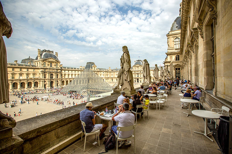С 35 000 работ, выставленных в 403 комнатах на 72 735 кв. м. музея, прогулка по Лувру – это настоящая экспедиция. Конечно, важно иметь удобную обувь, но даже самые мужественные посетители музеев должны перервать забег в искусство и отдохнуть. Советуем Café Mollien на первом этаже крыла Denon. Еда здесь не слишком дорогая по сравнению с другими ресторанами Лувра, но в отличие от бесхарактерных мест под пирамидой, Café Mollien – довольно изысканный ресторан, с колоннами и прекрасной террасой со скульптурами, которые вместе с вами взирают на Париж с высоты.