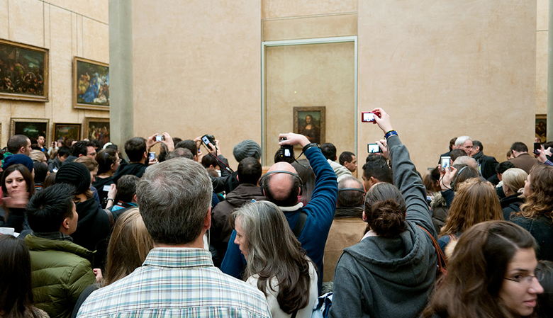 Портрет Джоконды маленького размера, а смотреть ее можно с расстояния 2 метра. Толпа напирает, щелкает фотоаппаратами, делает селфи. Туристы готовы на все ради хорошего кадра, кроме спокойного созерцания загадочной улыбки Моны Лизы. Любители картины говорят, что к ней нужно приходить в первые минуты после открытия музея, когда толпа от входа еще не достигла зала с портретом, и есть шанс насладиться эти шедевром мировой живописи!