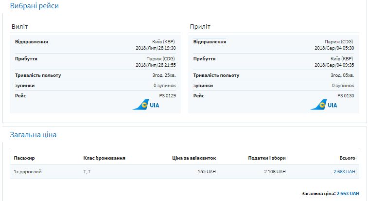 Київ – Париж, 28 липня – 4 серпня, 88 євро в обидва боки.