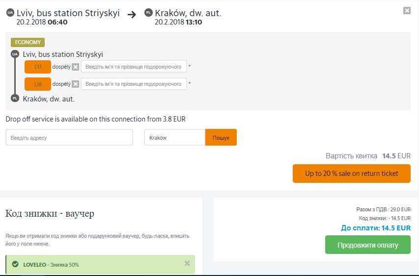 Львів – Краків, 20 лютого – 14,5 євро за двох.