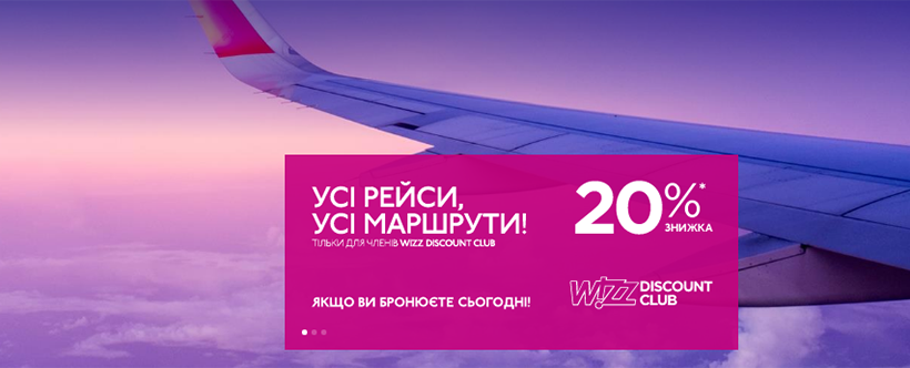Авіакомпанія Wizz Air пропонує знижку 20% на всі рейси та маршрути членам Wizz Discount Club, якщо забронювати квитки сьогоді, 28 лютого.