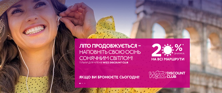 Акція доступна для членів Wizz Discount Club. Ціни стартують від €8 в один бік.