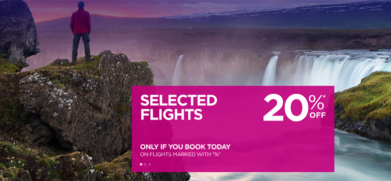 Авіакомпанія Wizz Air пропонує знижку 20% на всі рейси з позначкою «%», якщо бронюєте сьогодні, 20 вересня.