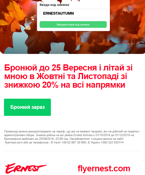 Період акції: до 25 вересня. Період подорожей: 01 жовтня – 01 грудня 2018 р.