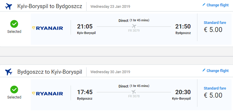 Ryanair знизив ціни на квитки з України – від €5, з Польщі – від €4 в один бік. Мандрія такі ціни відшукала і ділиться цією інформацією з вами. В якості зразка пропонуємо перельоти з Києва в Бидгощ та Барселону, зі Львова в Дюссельдорф та Лондон, з Катовіце в Мілан та з Кракова в Париж.