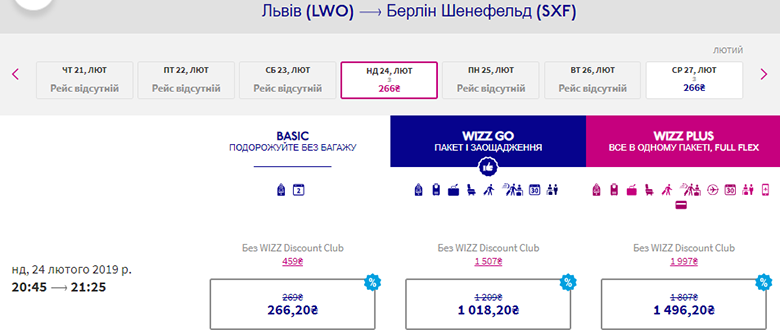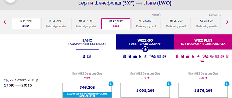Дати – 24-27 лютого. За квитки туди-назад доведеться сплатити €19 або ₴612 для учасників wizz-клубу та €35 або ₴1138 для всіх інших.