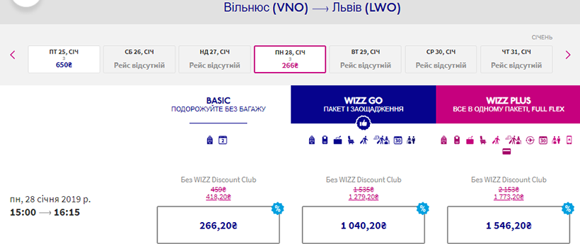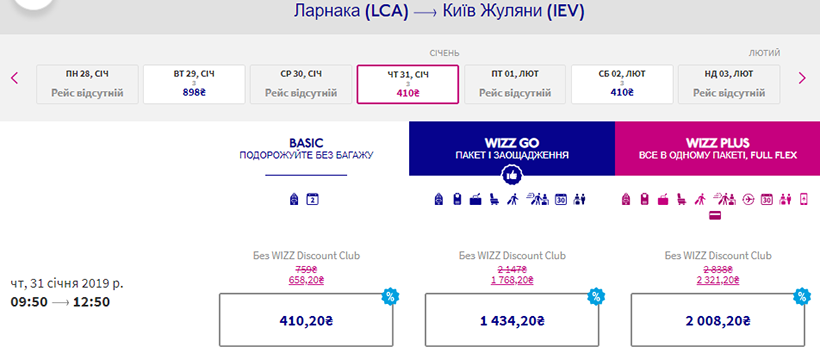 Дати – 21-28 січня. Учасники Wizz-клубу заплатять за квитки у дві сторони з урахуванням знижки €17 або ₴532, а всі інші – €26 або ₴836.