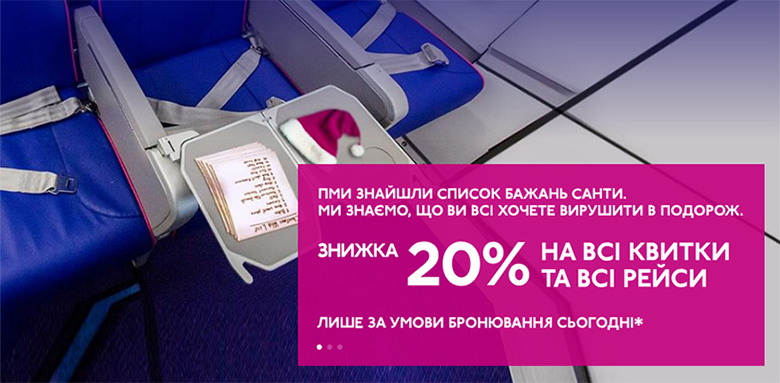 Лише вчора Wizz Air пропонувала знижку учасникам Wizz-клубу, а вже сьогодні квитки зі знижкою 20% доступні всім пассажирам. Забронювати акційні квитки можна лише сьогодні, 13 грудня.