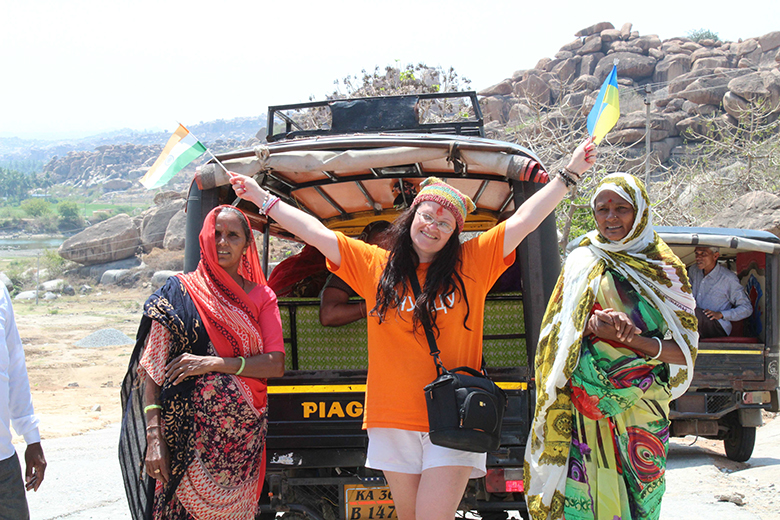 – Баранчик Шон жив у мене давно. Вперше я взяла його з собою у Чорногорію. По прильоту Шон сказав: «Годиться» – і став зі мною подорожувати. Потім йому стало трохи нудно – так в нас з’явився ведмедик Міха. Шон вже відвідав 11 країн, Міха – 8. Не пропускають жодної поїздки зі мною – і за кордон, і по Україні (навіть ходили зі мною святити паску). Бачили і Ейфелеву вежу у Франції, і скарбницю Ель-Хазна в Йорданії, і Індійський океан у Шрі-Ланці. Я в їхньому віці стільки не бачила! (жарт). А в Німеччині тікали від мене – напевне, планували громадянство прийняти. На заправці фотографувала їх на стенді з газетами – і забула. В автобусі похопилась – нема! Дуже засмутилась, побігла назад на заправку, все обшукала – дивлюсь, а вони вже сидять у фрау за прилавком. Я заверещала, схопила їх і побігла назад в автобус, де за Міху і Шона переживала вся група.