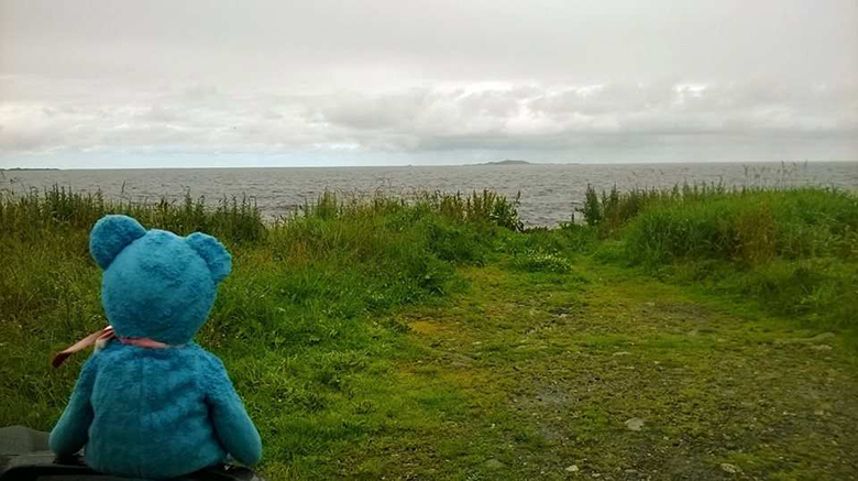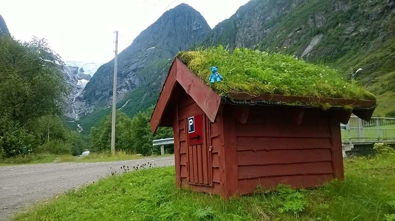 Таким виглядає Minya the Blue Bear, якого якось відпустив у подорож по Норвегії Іван Прокопенко. У Minya – своя сторінка у ФБ. Він заліз на дах будиночка для тролів навпроти льодовика Briksdal Glacier і роздумує; «Є місця, які ідеально підходять вам. Ви просто знаходите їх, і кажете: «О, ось це місце для мене, нарешті я його знайшов». Але єдиний шанс опинитися там – їхати і шукати».